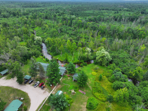 Terraquest Real Estate & Land Company is proud to present North River’s Lodge in Luther, Michigan! Nestled in the heart of the scenic Manistee National Forest, these restored early 20th-century log cabins overlook the serene Little Manistee River.